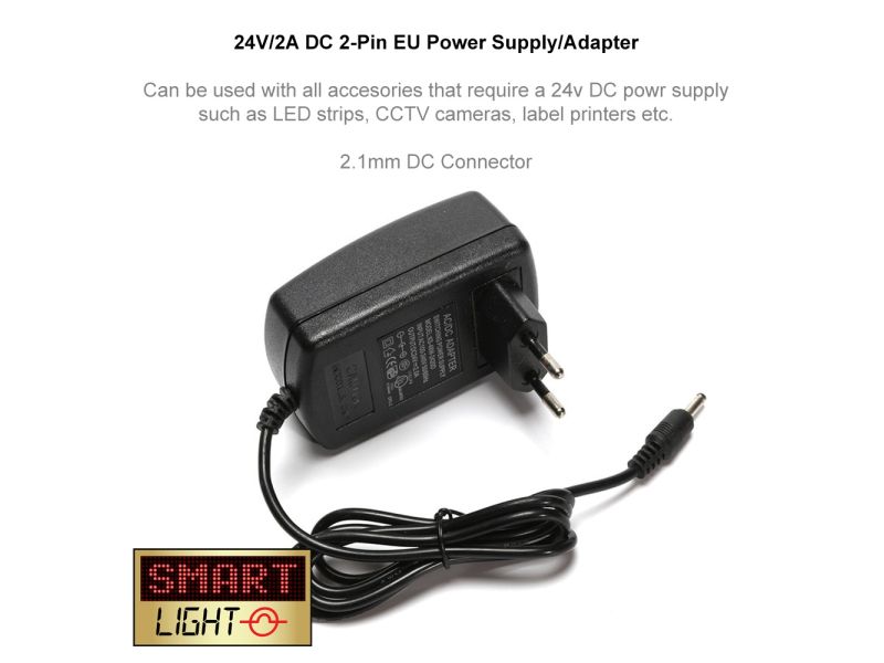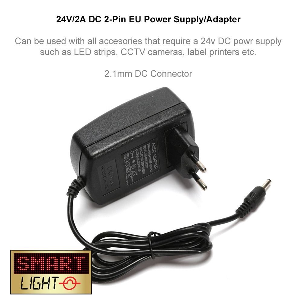 24V/2A DC 2-Pin EU Power Supply/Adaptor LED Strips/CCTV/Label Printers etc (2.1mm Connector)