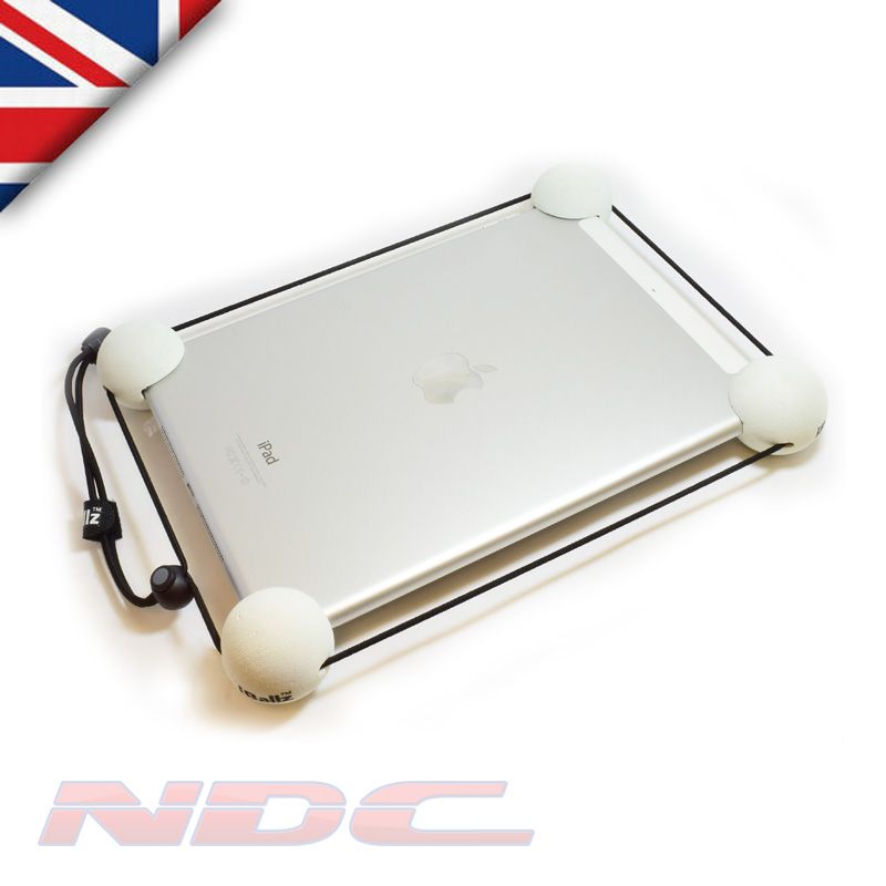 Four lightweight EVA foam rubber balls cushion tablet against drops and elevate above spills without concealing device. No unnecessary weight or bulk!