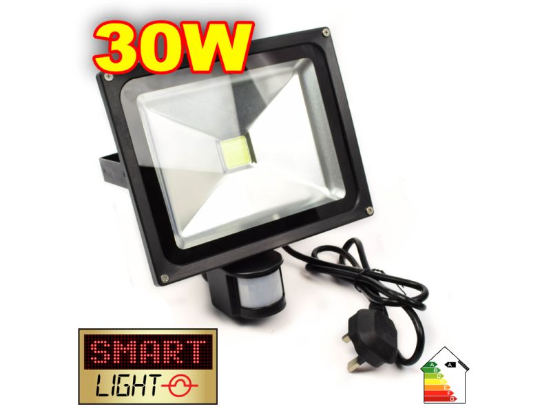 L859 -- SmartLight Cool White LED Flood Light with PIR UK PLUG - 30W